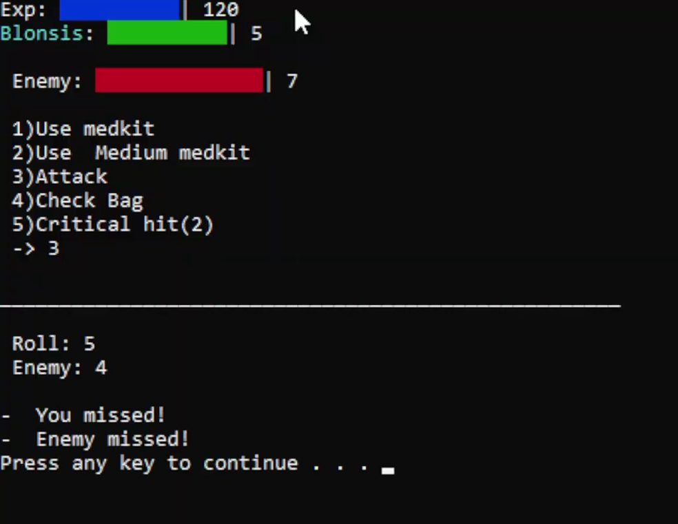 Unpredictable is a prototype built in C++ that combines retro-inspired mechanics. From Snake, it takes the grid-based movement and spatial management, while from Zelda it borrows elements of exploration and encounters. The combat system is turn-based and relies on dice percentage rolls, introducing both strategy and randomness into every fight.